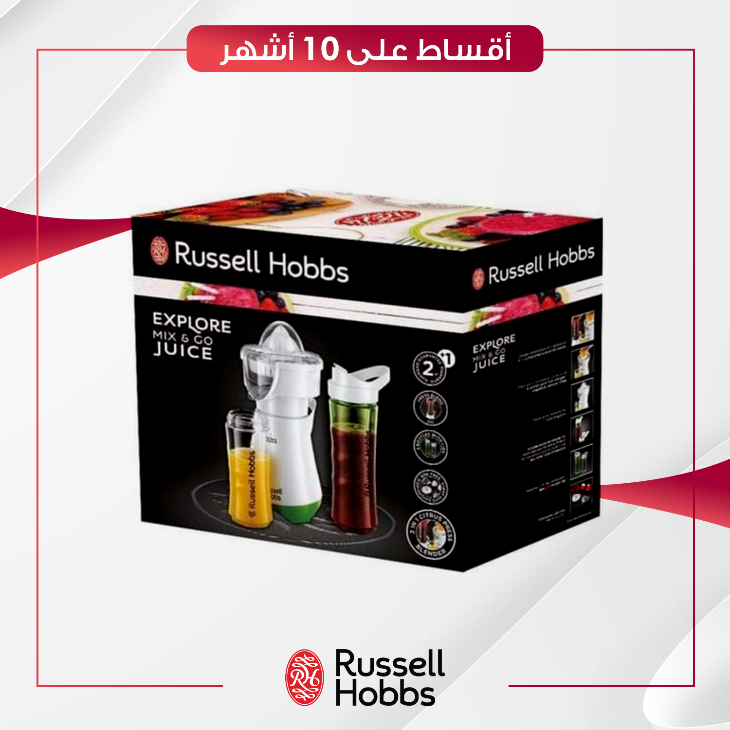 جهاز "Mix & Go Juice" المبتكر الذي يدمج بين عصارة الحمضيات وخلاط السموذي المتنقل في جهاز واحد بقدرة 300 واط. يأتي مع رأسين لعصر الحمضيات وزجاجات رياضية (600 مل و400 مل) مزودة بأغطية للشرب المباشر، مما يجعله مثالياً لتحضير العصائر الطازجة والبروتين شيك بسرعة وسهولة.