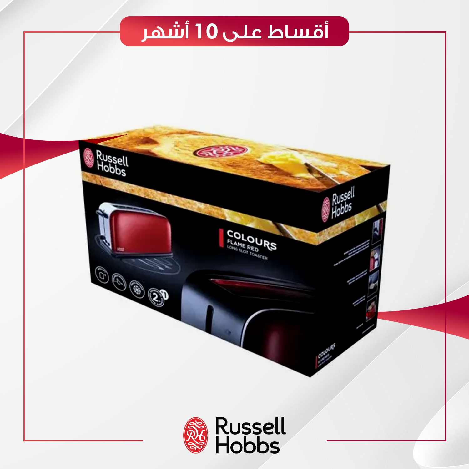 محمصة خبز (توستر) طويلة Russell Hobbs راسل هوبز - 21391 - احمر