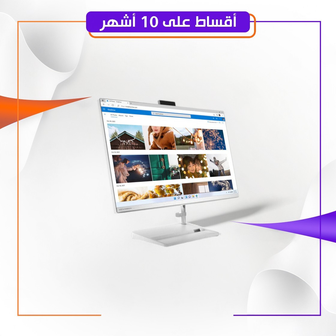 Technology, 12 MB L3 cache, 10 cores, 12 threads) RAM - 8GB DDR4-3200 SODIMM (1x8G) , 2 Memory Slots STORAGE -512GB NVMe SSD M.2 2280 PCIe GPU - Intel® Iris® Xᵉ Graphics Display - 23.8 , FHD (1920 x 1080), touch, IPS, three-sided micro-edge, anti-glare, 250 nits, 72% NTSC Color - Starry white Accessories - Keyboard and Mouse OS - Free Dos Warranty - ضمان الوكالة سنة صيانة Upgrade Option - Windows 11 License Key (10,000 IQD) |
