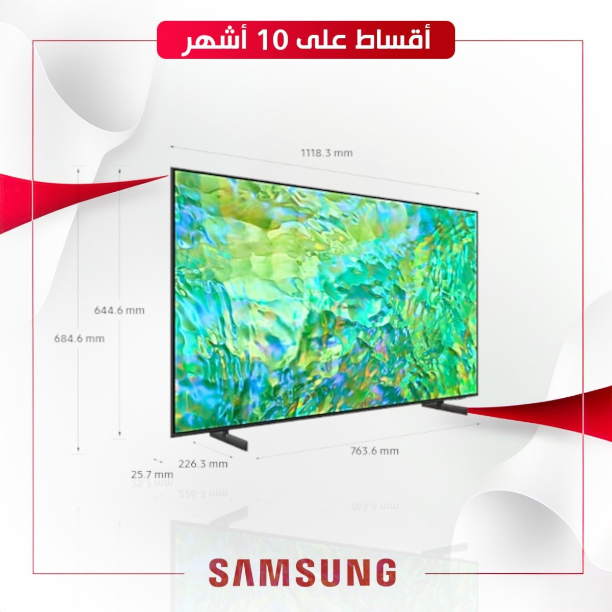 المقاسات 1232.1 x 747.8 x 228.8 mm (with stand), 1232.1 x 708.8 x 25.7 mm (without stand)