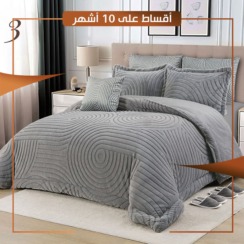 زولية فرو ارضية 180*280 صافي لحاف نفرين قذيفة القياس لحاف 230*250 شرشف 180*200+25سم 2- وجه مخدة 50*70+5سم 2-وجه مخدة 50*70 1-وجه كوشة 45*45 4- شبشب