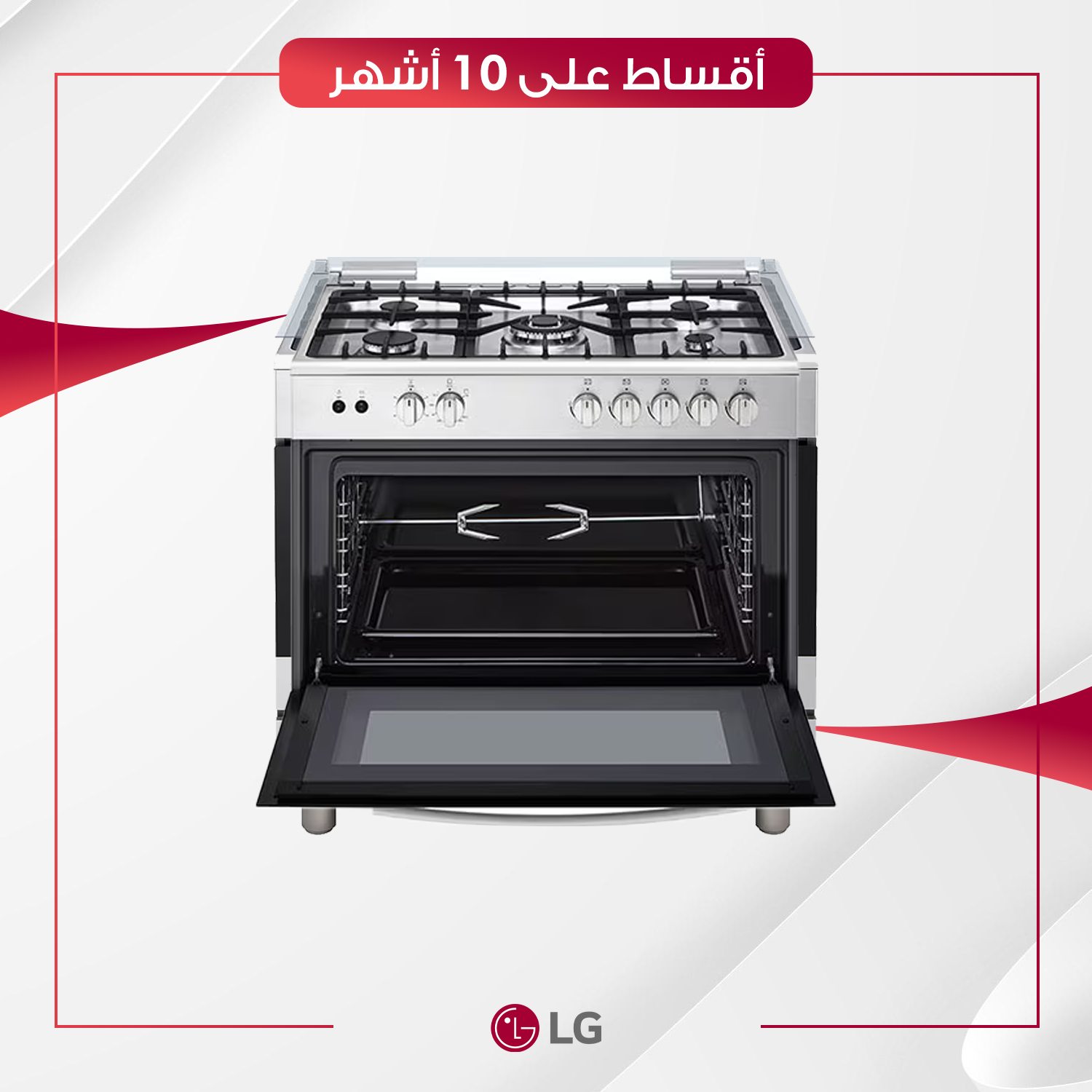 يقدّم LG FA415RMA موقد غاز حرّ تقفيل حر بطول 90 سم مع ٥ شعلات تتراوح قوتها من 1.0 إلى 3.6 كيلوواط، وفرن كبير بسعة 100 لتر وشواية دوّارة (روتيزيري). يشتمل على ميزات أمان مثل قطع الغاز تلقائياً عند انطفاء اللهب للفرن والشعلات، وزجاج باب قابل للإزالة للتنظيف السهل، وشواء داخلي مغلق للحفاظ على الحرارة والروائح، وتنظيف تحفيزي ذاتي