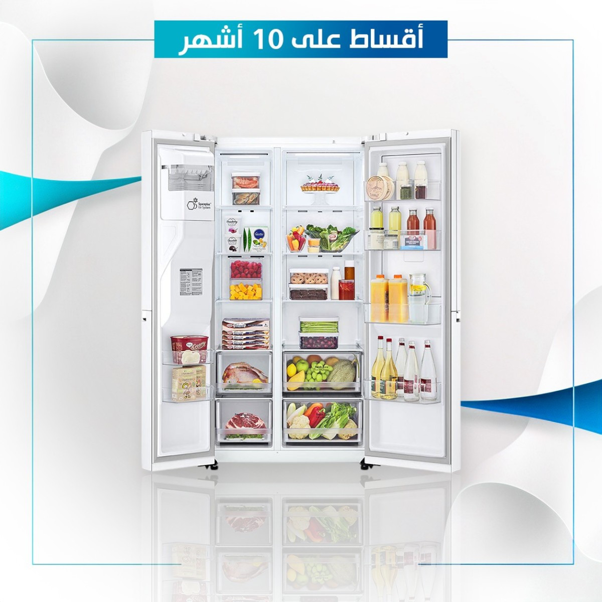 ثلاجة LG 22 قدم ، تتميز بتصميم أنيق وعصري بباب داخل باب وباللون الأبيض النقي السعة: 611 لتر ، ما يعني أنها توفر مساحة واسعة لتخزين الأطعمة والمشروبات ، التصميم: تأتي الثلاجة بـ بابين ، مما يتيح تنظيمًا أفضل للمواد الغذائية والوصول السهل إلى المحتويات ، تقنية ™LinearCooling ، تدفق هواء متعدد ، تصميم UltraSleek Door ، سعة تخزين كبيرة ، تشخيص ذكي™ ، الضاغط العاكس الذكي™ ، باب داخل باب: تصميم يتيح الوصول السريع إلى العناصر الأساسية دون الحاجة لفتح الثلاجة بالكامل، مما يحسن من كفاءة استهلاك الطاقة ، التبريد: توفر نظام تبريد متقدم يحافظ على برودة الطعام ويمنع التغيرات المفاجئة في درجات الحرارة ، التصميم الخارجي: اللون الأبيض النقي يضيف لمسة من الأناقة إلى مطبخك، ويتماشى مع معظم الديكورات ، المميزات الإضافية : موزع مياه ، قفل الاطفال ، تحتوي الثلاجة على نظام تبريد بخاخ متوازن، أرفف قابلة للتعديل، وخزائن متعددة لتخزين العناصر بشكل منظم ، هذه الثلاجة مناسبة للعائلات الكبيرة أو الأشخاص الذين يحتاجون إلى مساحة تخزين كبيرة، وتجمع بين الأداء العالي والتصميم العصري