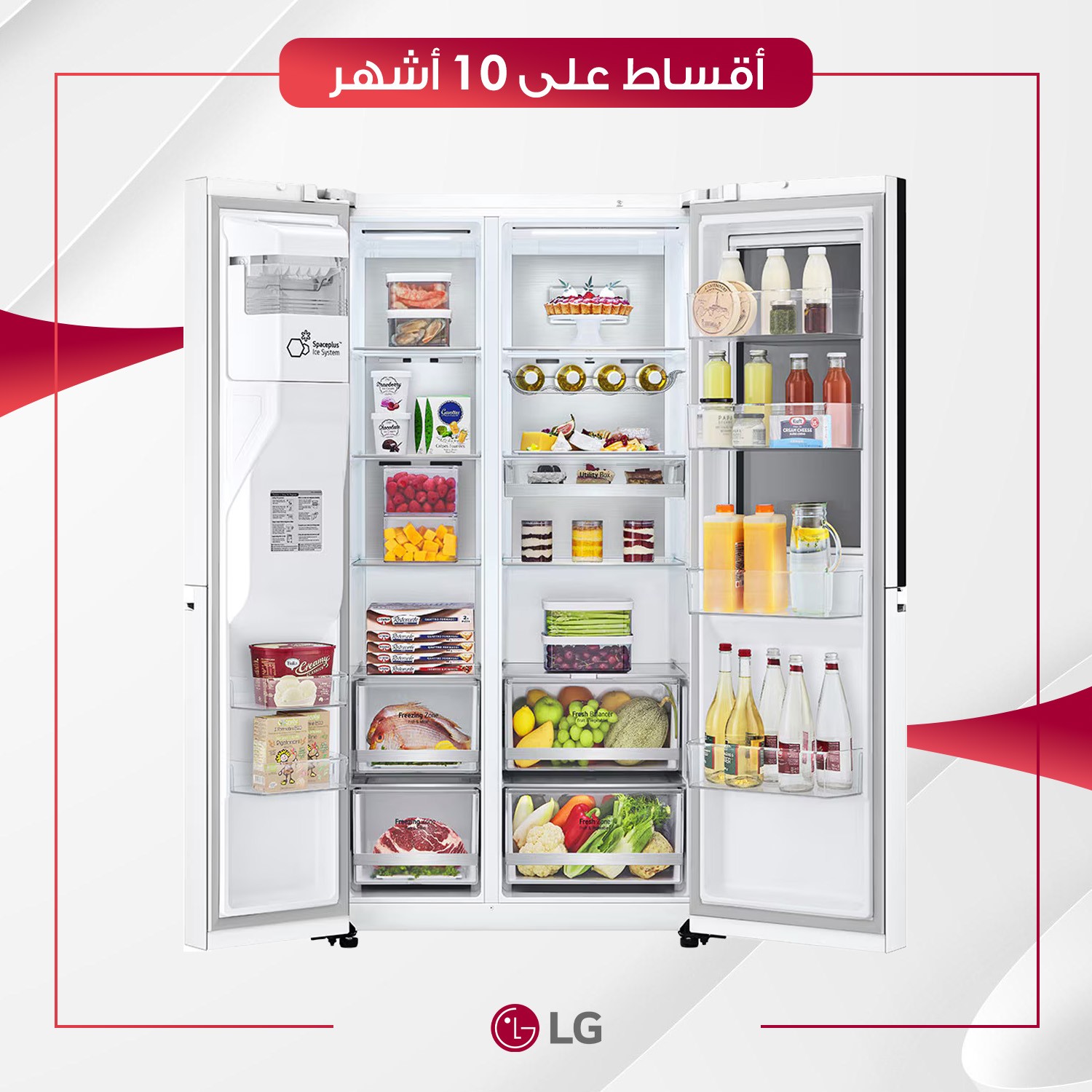 ثلاجة أربع أبواب بسعة اجمالية 705 لتر باب داخل باب وتقنية Hygiene Fresh , لون ابيض