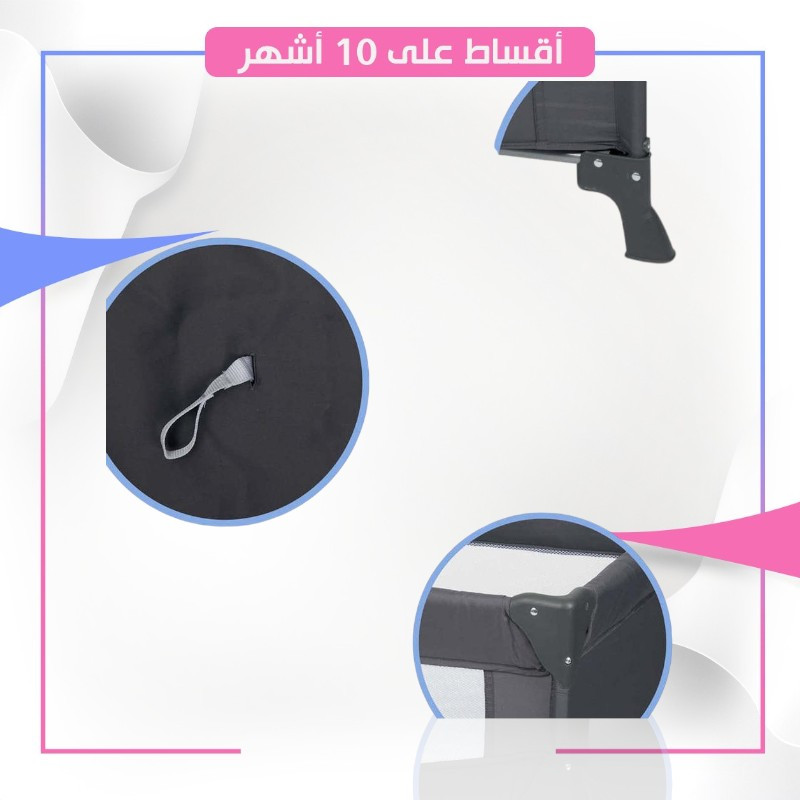 سرير أطفال مجهز بنظام أمان مزدوج أسفل السرير, لتجنب أي خطر للطي العرضي, وبجوانب مستديرة والأرجل المستقرة توفر لطفلك الأمان المطلق.خذها أينما تريد، وفي أي مكان ستكون ليلة سعيدة. بسيط ومتعدد الاستخدامات ويوفر للطفل مساحة مثالية لقيلولة