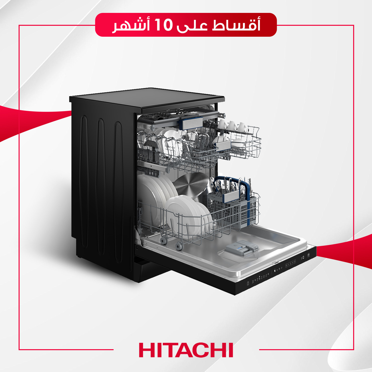 غسالة صحون ماركة Hitachi هيتاشي - HDFF158CVGB - اسود زجاجي