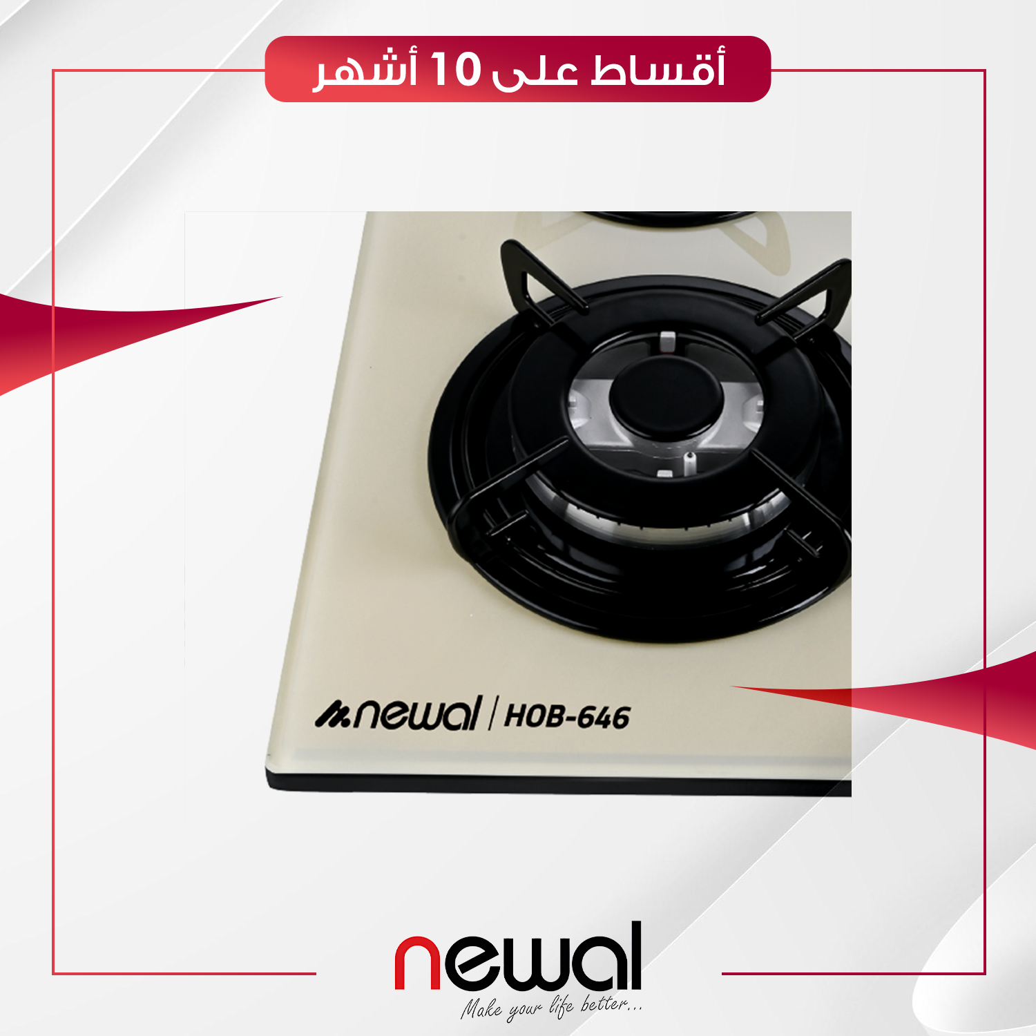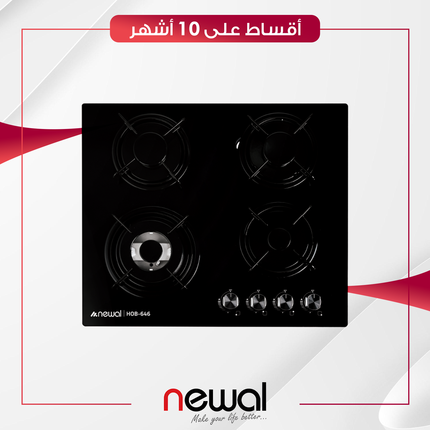 طباخ غازي داخلي (بلت-ان) Newal نوال - 4 عيون - 60 سم - HOB-646-02 - اسود