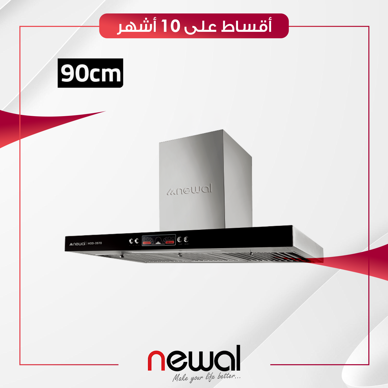 تتميز مرشحة المطبخ من Newal ذات الـ 90 سم بتصميم متقدم يضفي لمسة جمالية وفخامة على المطبخ. تتوفر بلمسة الستيل، وتوفر أداء شفط فائقًا مع ميزات إضافية لضمان أفضل تهوية.