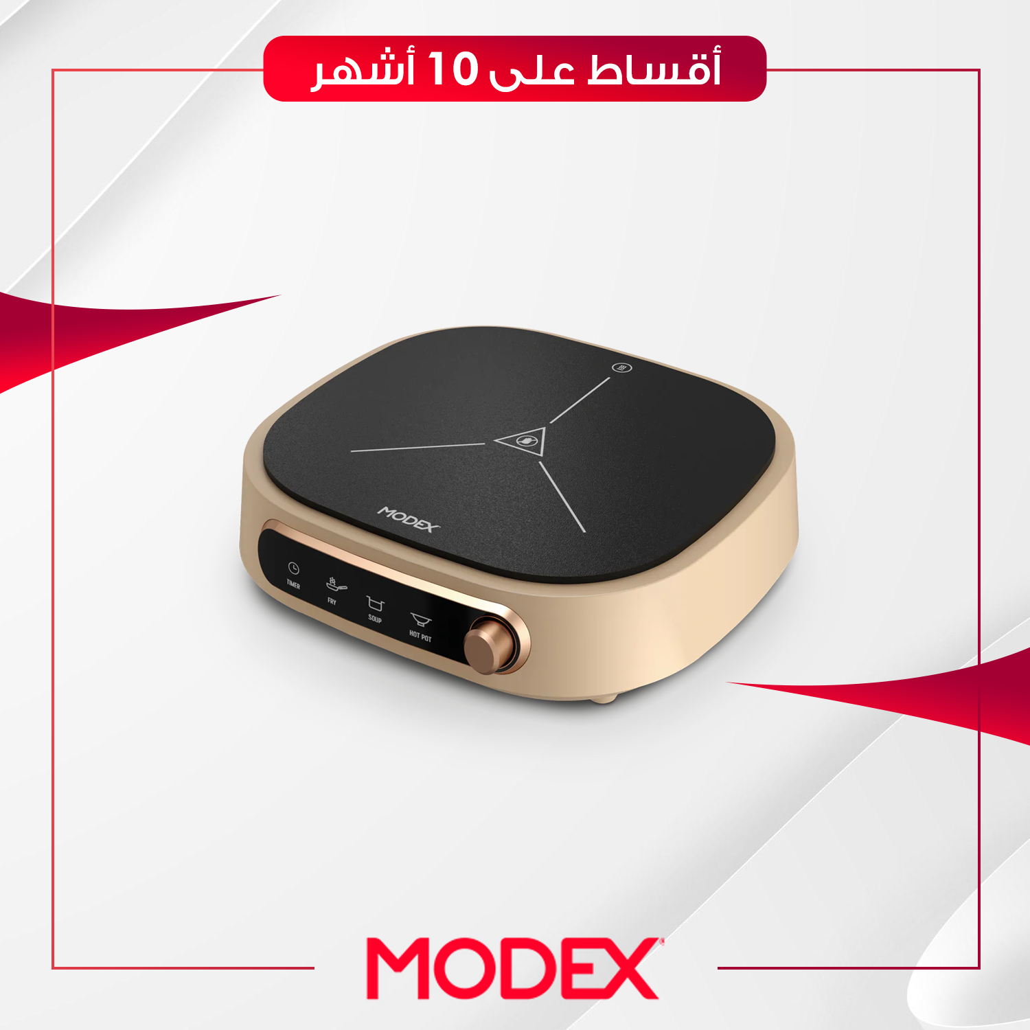 طباخ سيراميك (Infrared) بلون بيجي فريد، يعمل مع جميع أنواع القدور (ستيل، فخار، زجاج). يتميز بـ 10 مستويات للطاقة ودرجة حرارة تصل إلى 600 درجة مئوية.