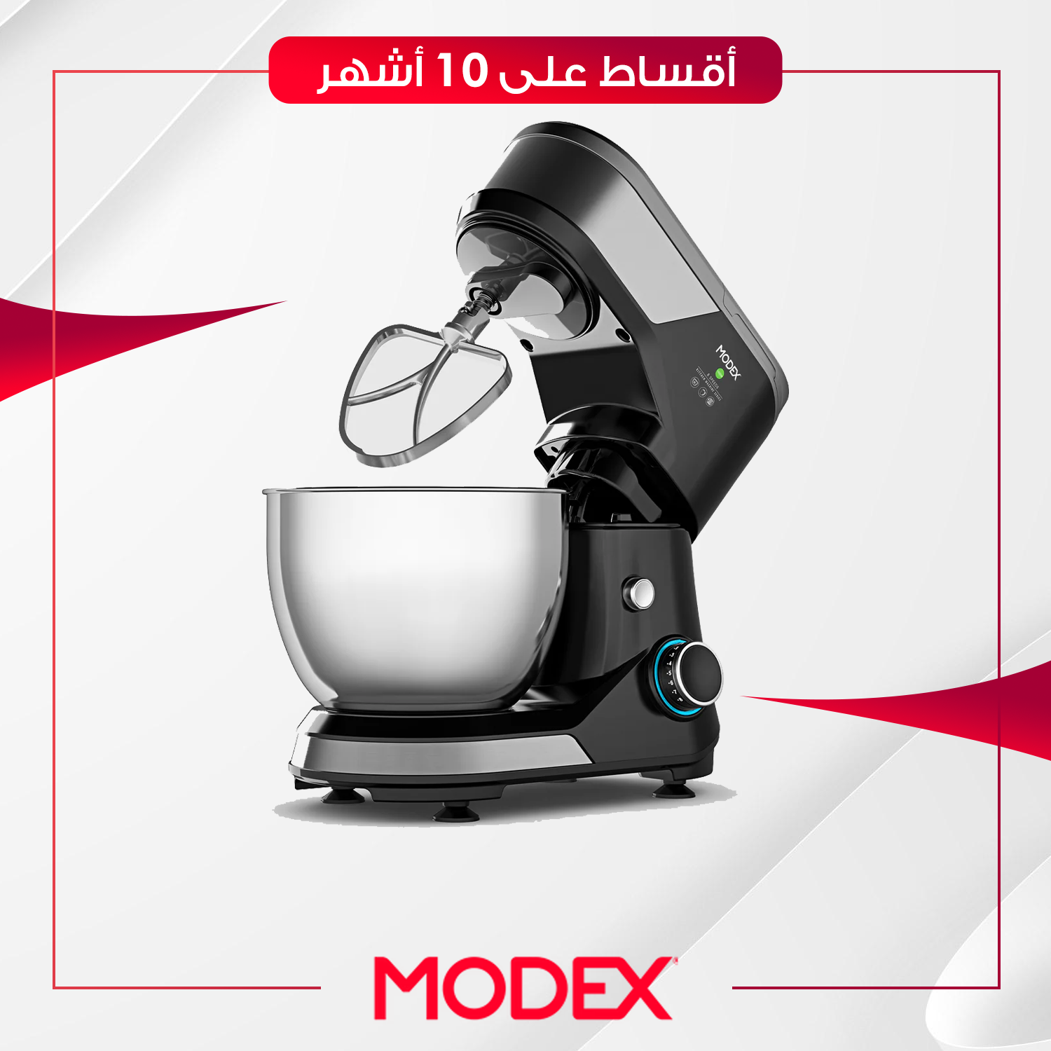 عجانة ستيل متطورة بمحرك 1200 واط، تتميز بوعاء سعة 5.5 لتر ومؤقت رقمي مدمج. مصممة لتكون رفيقة الطهاة في تحضير الحلويات والمعجنات بفضل دقة التحكم في سرعات الخلط.