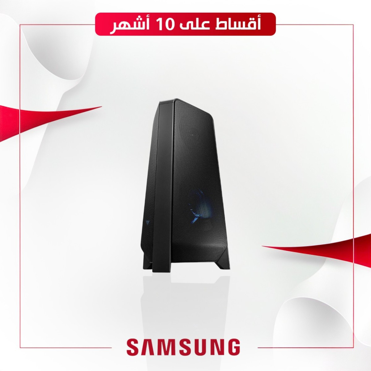 جهاز الصوت من سامسونغ استمتع بإيقاع حفلاتك الصاخبة وسِّع نطاق الصوت ثنائي الاتجاه جهير استثنائي صوت ثنائي الاتجاه أضواء حفلات LED مقاومة الماء تشغيل جماعي القدرة : 300 وا