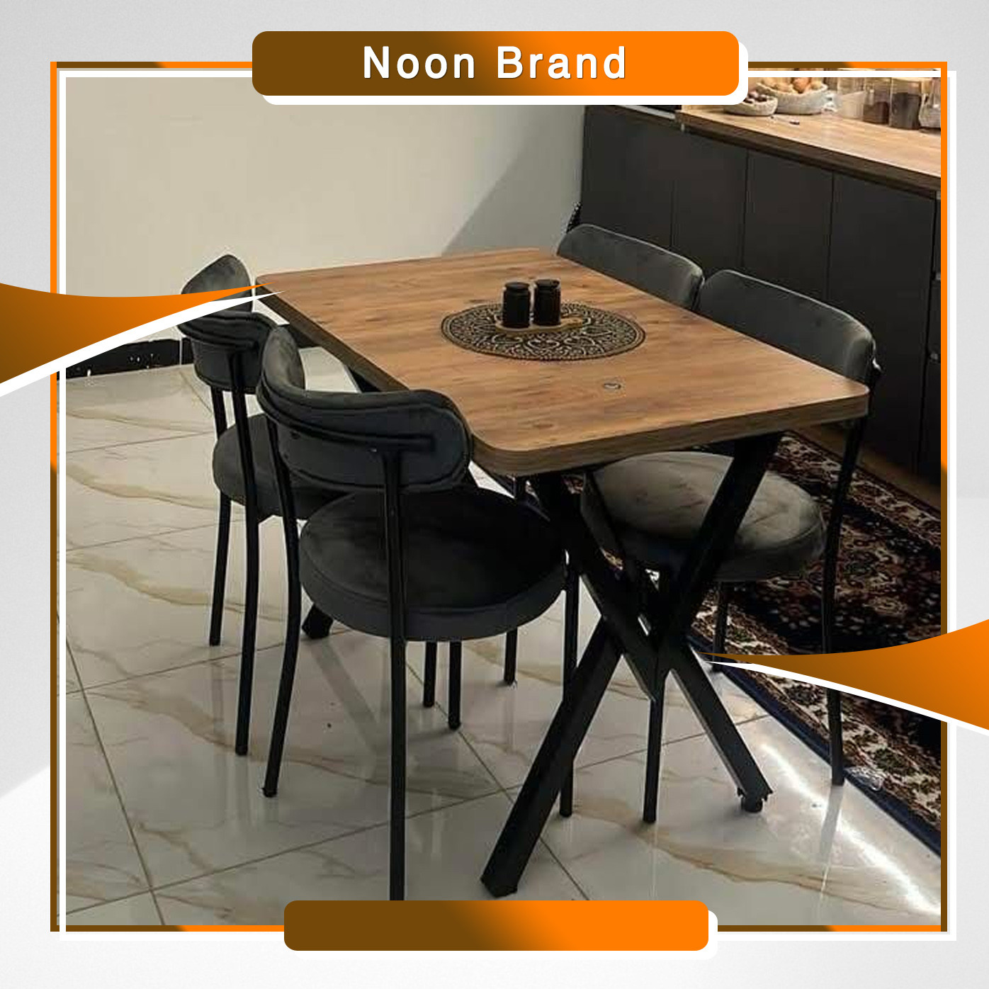 ميز طعام مع كراسي 4 مصنوع من الخشب و الهيكل الحديد