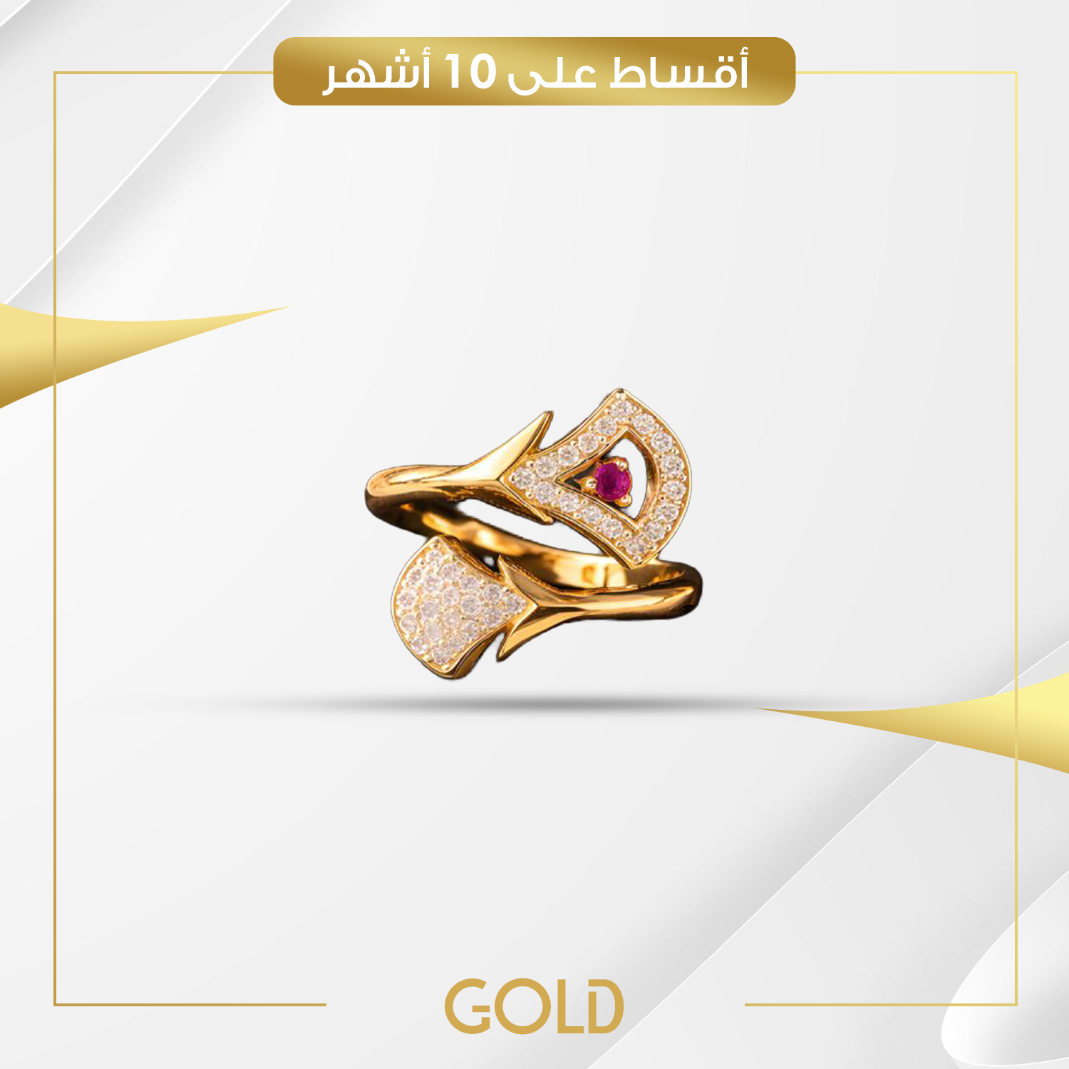 خاتم ذهب مزخرف بشذرة حمراء الوزن 6.07 غرام - قياس 14