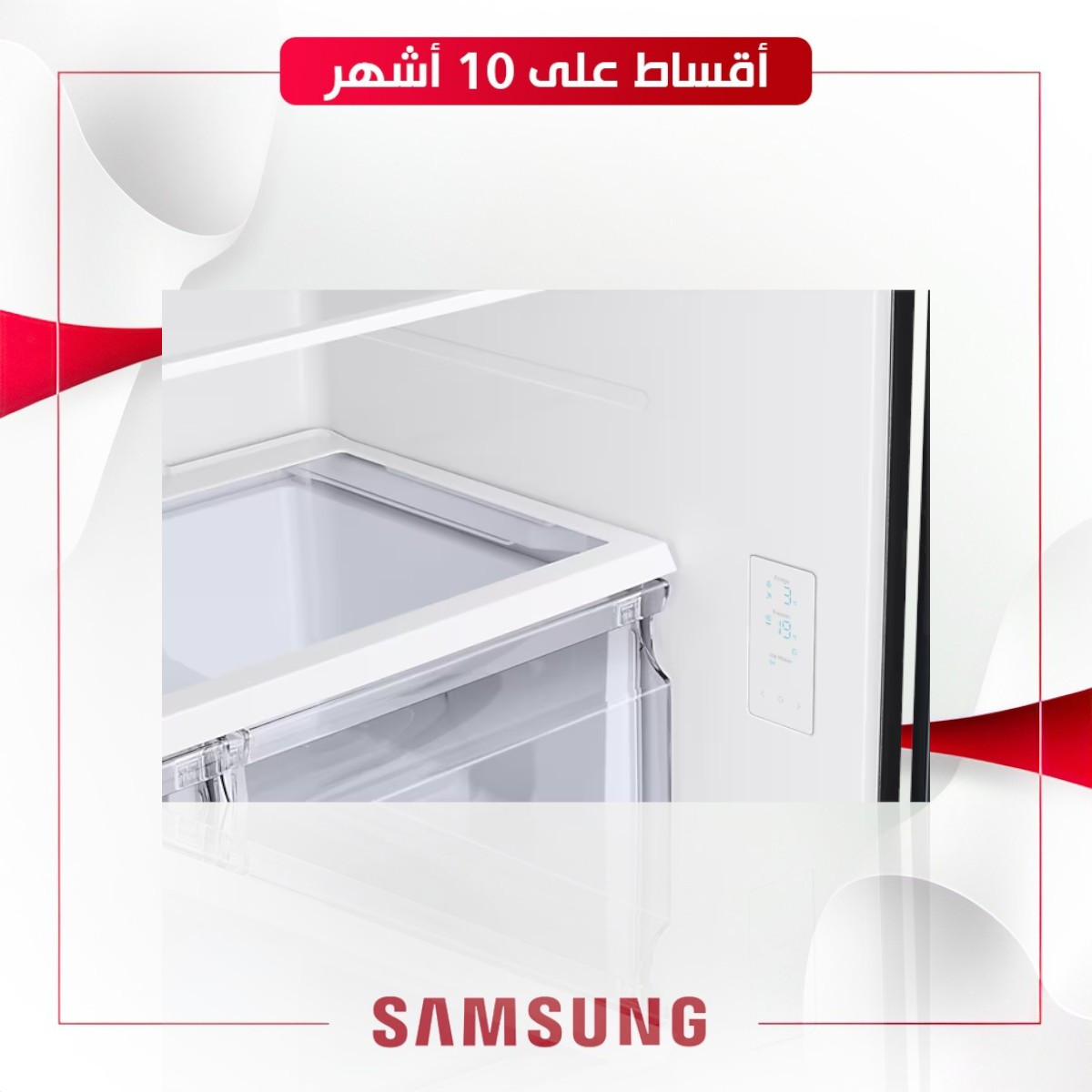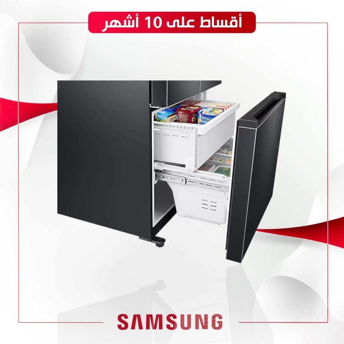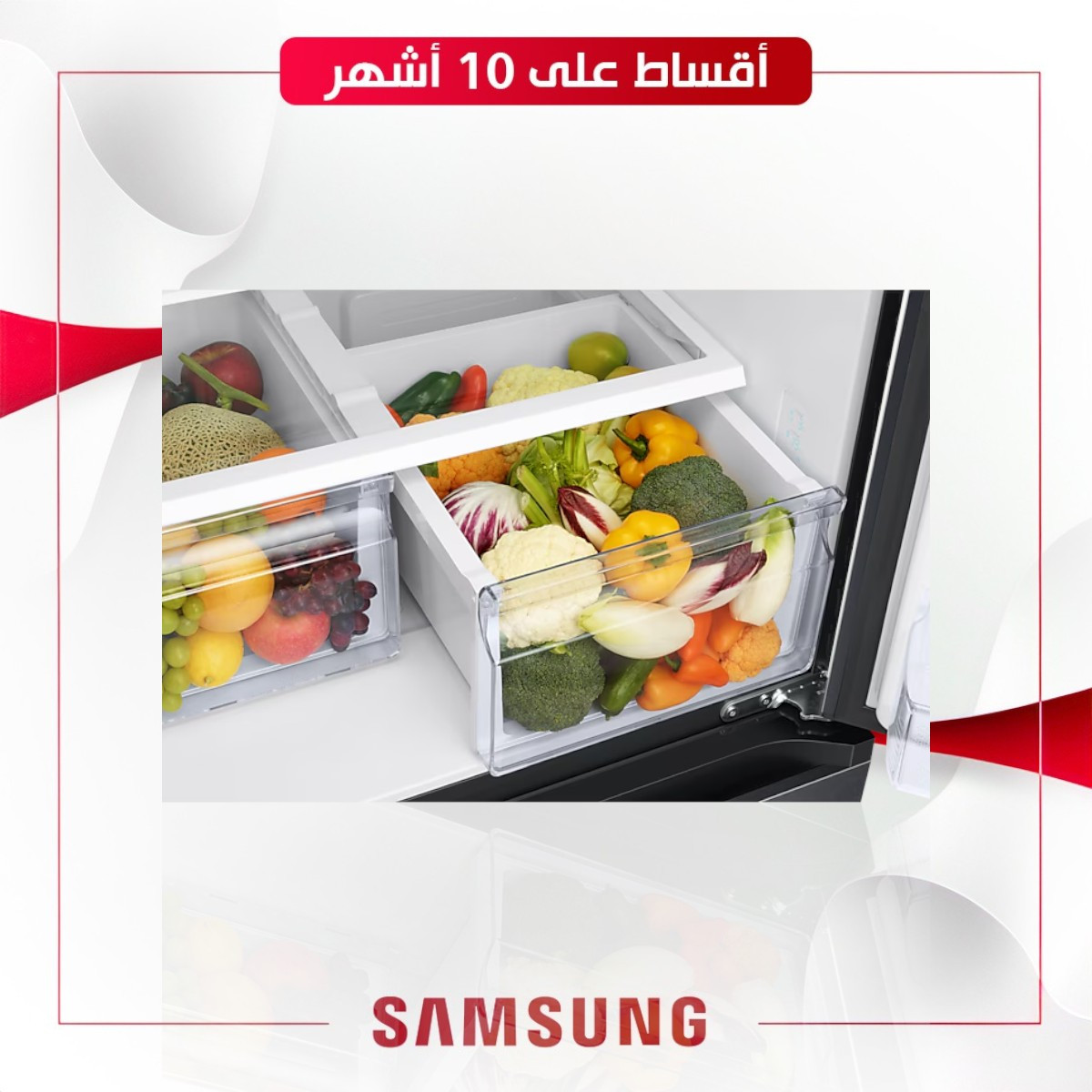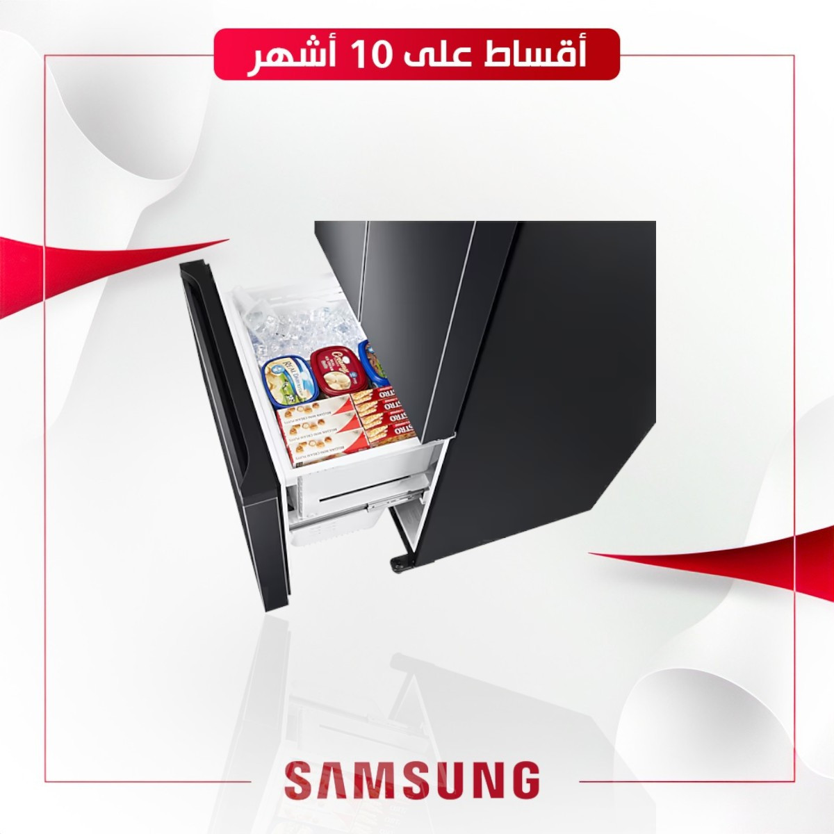ثلاجة ثلاثية الابواب من سامسونك الحجم : 21 قدم السعة : 470 لتر ديجيتال انفيرتر نوع التبريد : تقنية Twin Cooling Plus (التبريد المزدوج الإضافي)نوع الضاغط : ضاغط العاكس الرقمي ضوضاءأقل، ويستخدم طاقة أقل بكثير إضاءة LED داخلية تكنولوجيا No Frost : تخلص من الثلج دون أي مجهود أو استغراقٍ للوقت خاصيتا Power Cool وPower Freeze : تبريد سريع وتجميد عند الطلب موزع مياه ضمان سنه للجهاز وضمان 10 سنوات للماطور الابعاد: العرضx817الارتفاعx1776 العمق765 ملم الوزن : 98 كغم