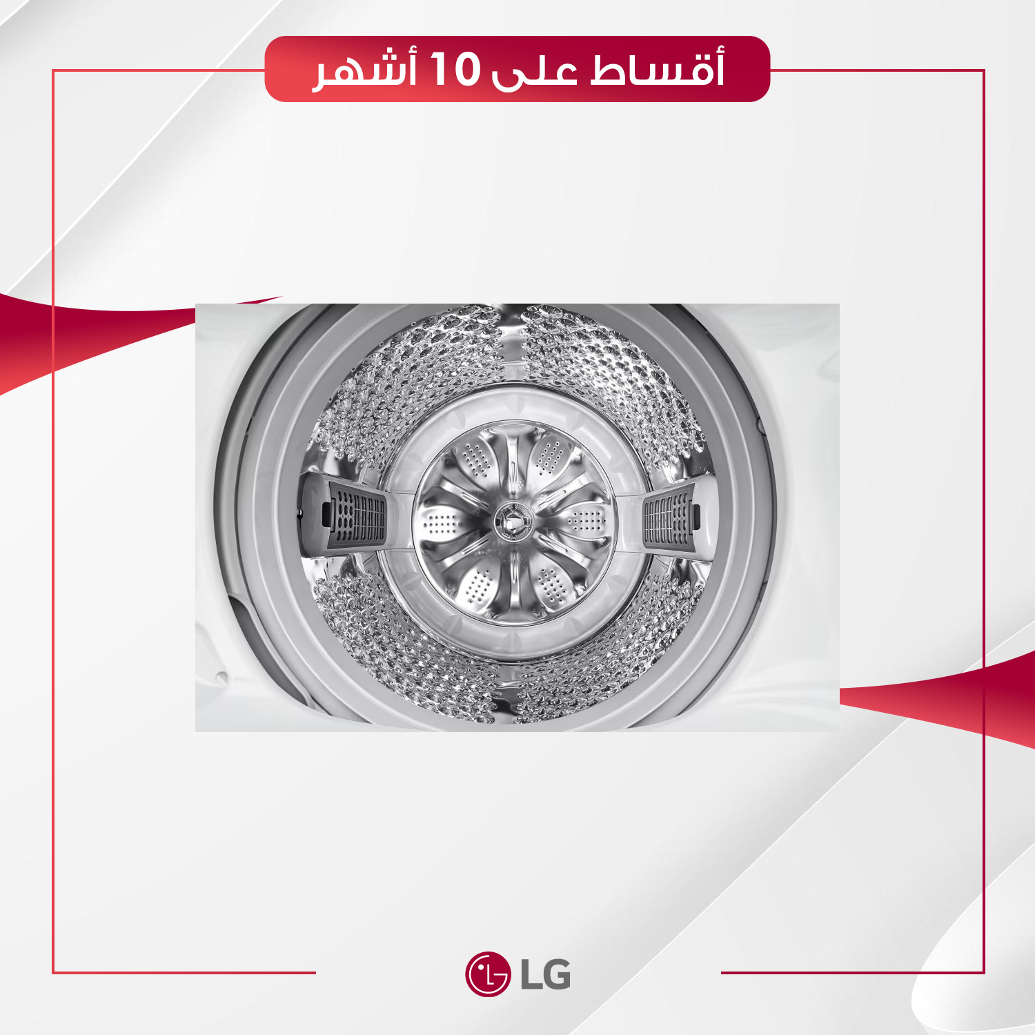 تعامل بسهولة مع كميات الغسيل الكبيرة باستخدام غسالة LG ذات التحميل العلوي بسعة 20 كجم بلونها الأبيض الأنيق، والمزودة بتقنية TurboDrum™ وThinQ™ الذكية. توفر TurboDrum™ غسيلاً قوياً ولطيفاً في آنٍ واحد لإزالة البقع الصعبة، بينما تتيح لك تقنية ThinQ™ التحكم والمراقبة عن بُعد عبر الهاتف الذكي. مثالية للعائلات الكبيرة التي تبحث عن السعة والراحة والأداء الذكي.
