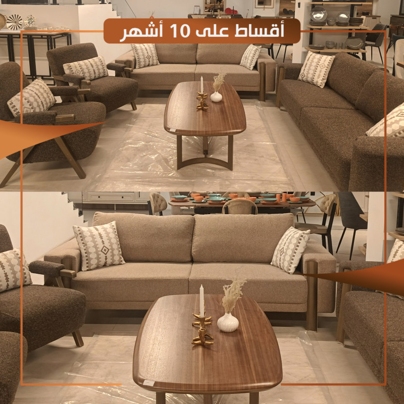 طقم اتلانتس 8 مقاعد اللون جوزي و كريمي - تركي