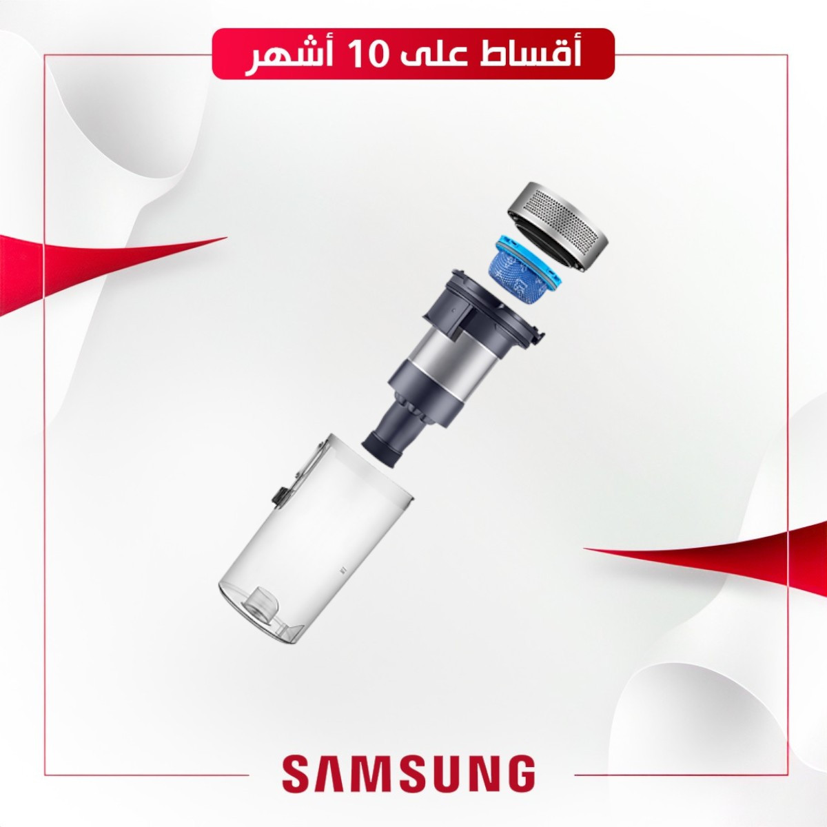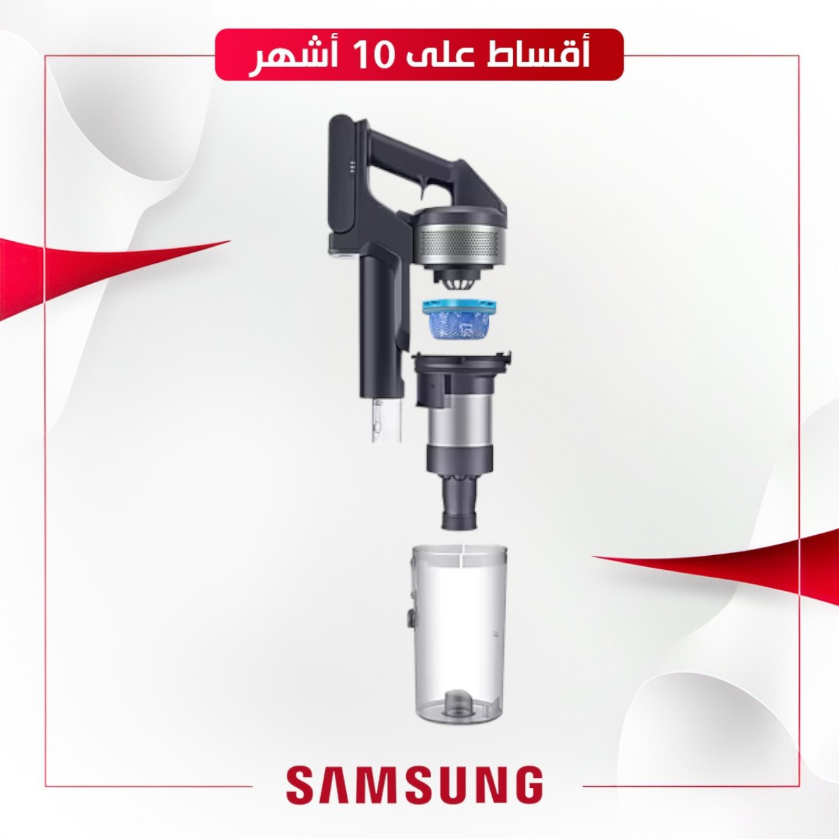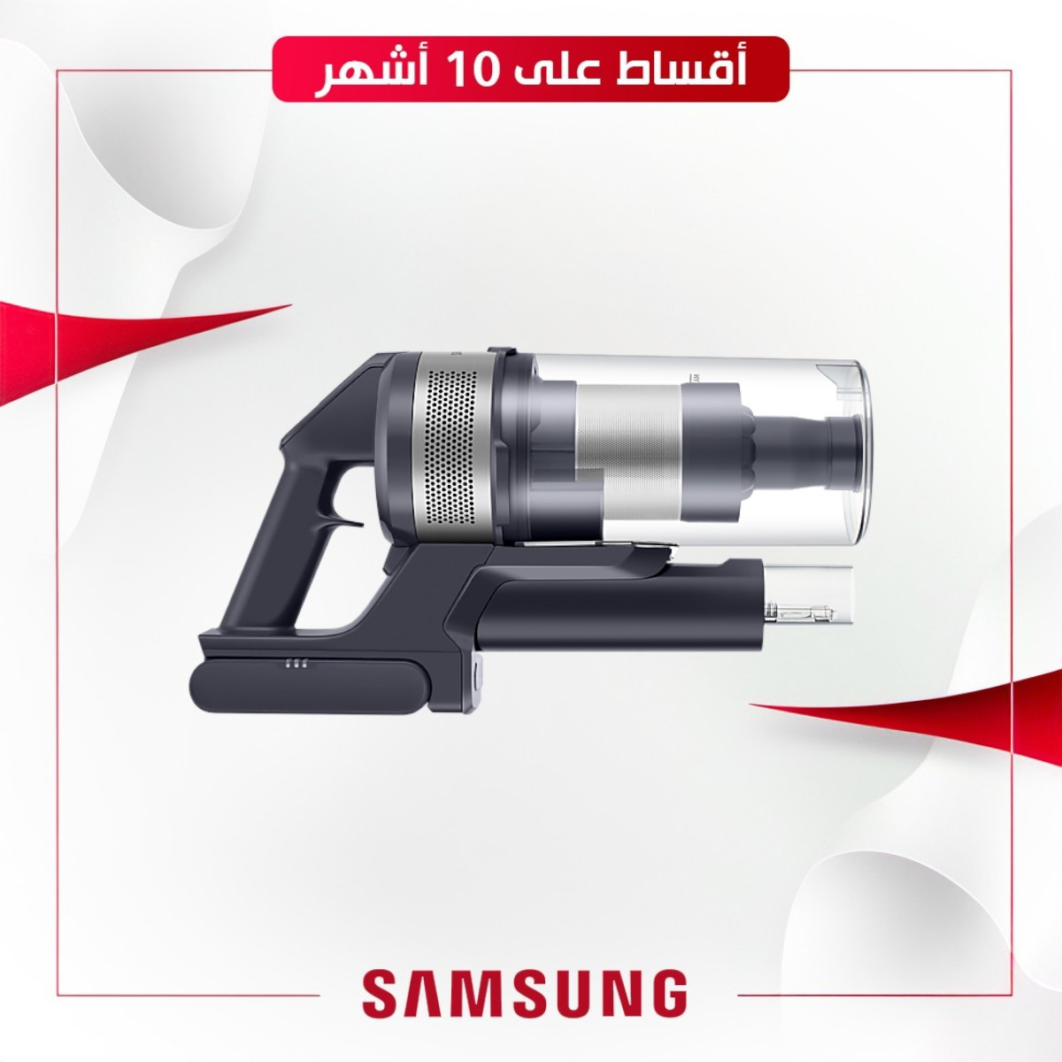 مكنسة كهربائية لاسلكية من سامسونج ، باللون اسود الوزن (الصافي): 2.3 كجم مدة العرض (الحد الأقصى): 40 دقيقة سعة سلة المهملات: 0.8 لتر وقت الشحن: 210 قوة الشفط: 150 واط المكنسة الكهربائية المثالية لأصحاب الحيوانات الأليفة تصل مدة التشغيل إلى 40 دقيقة* (تتضمن بطارية قابلة للإزالة)
