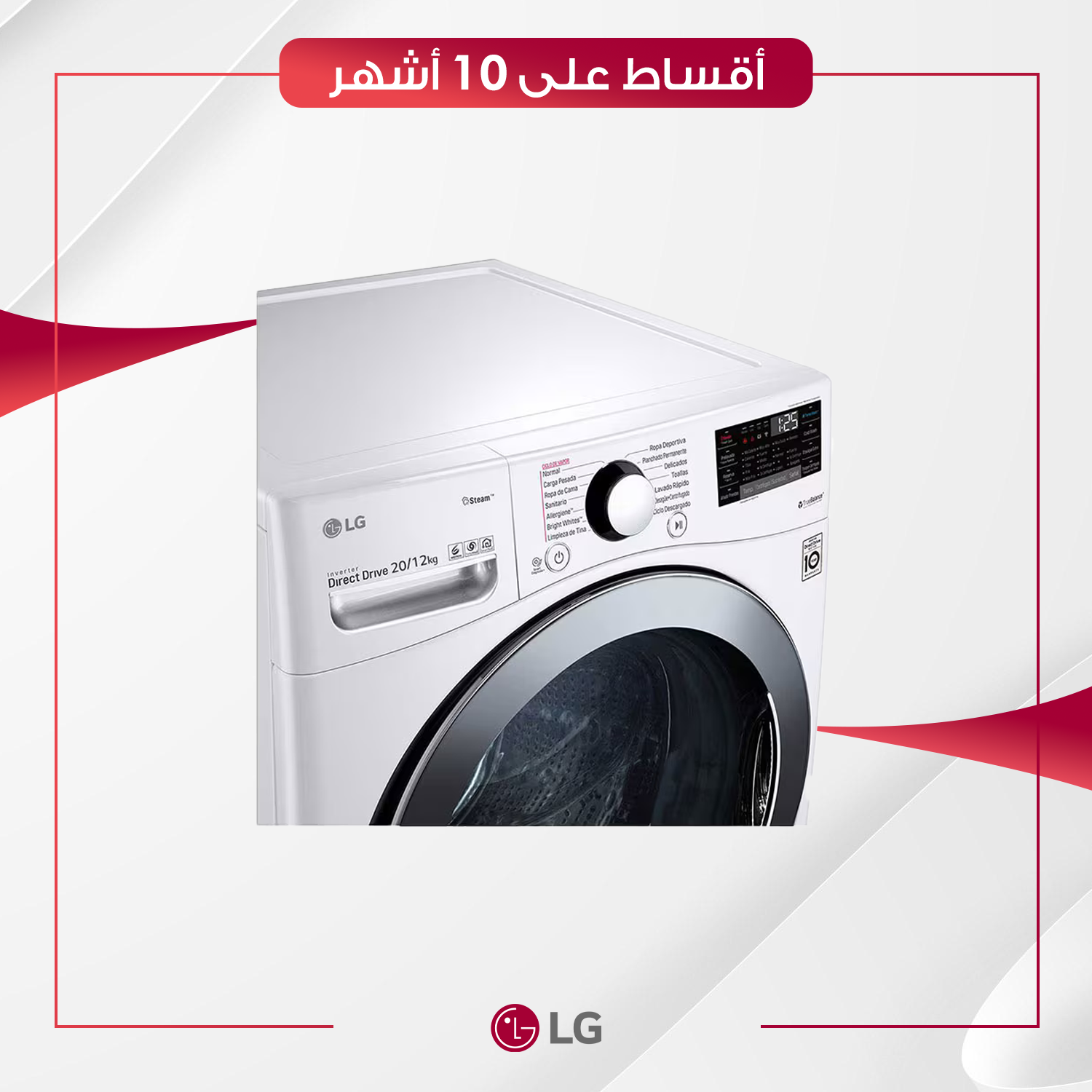 غسالة متطورة بسعة كبيرة 20 كيلوغرام، مثالية للعائلات الكبيرة. مزودة بتقنية الذكاء الاصطناعي المباشر (AI DD™) التي تتعرف تلقائياً على نوع الأقمشة وتختار أفضل دورة غسيل مناسبة. هذه التقنية تقلل من وقت الغسيل وتوفر عناية فائقة بملابسك لنتائج مثالية في كل مرة.