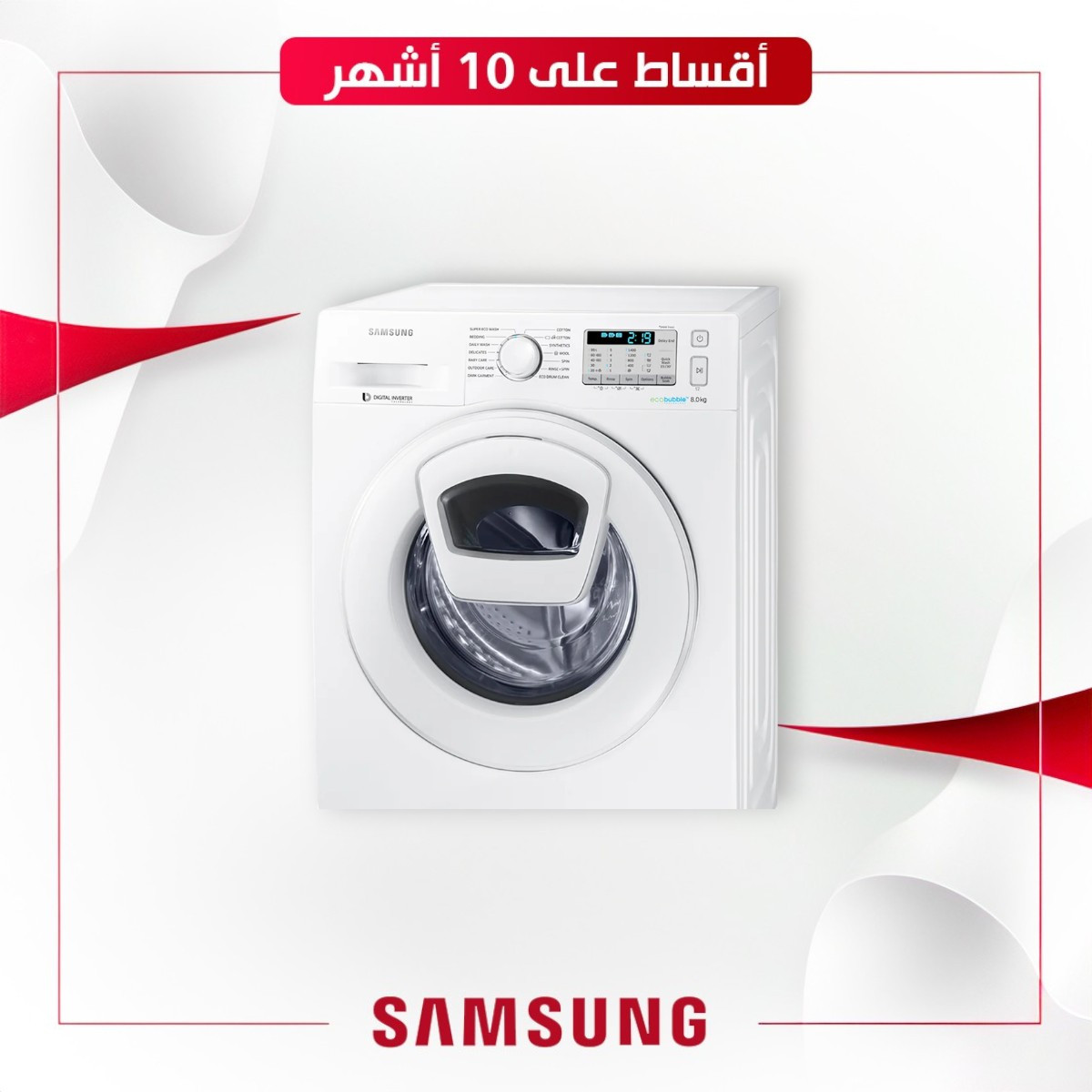 غسالة سامسونج WW80K5413WW بسعة 8 كيلوغرامات،باللون الأبيض، توفر مجموعة من الميزات التي تجعلها خيارًا مميزًاللأسر المتوسطة. هنا نظرة على أبرز خصائصها:السعة المناسبة: بسعة 8 كيلوغرامات، تعتبر هذه الغسالةمثاليةللأسر الصغيرة إلى المتوسطة، حيث يمكنها التعامل مع كمية جيدة من الملابس في دورة واحدة.اللون الأبيض: تأتي بلون أبيض كلاسيكي يتناسب مع معظم الديكورا الداخلية ويضفي مظهراً نظيفاً وعصرياً على المكان.تقنيةEcoBubble™: تتميز بتكنولوجيا EcoBubble™ التي توفر غسلًا فعالاً حتى في درجات حرارة منخفضة. تعمل هذه التقنية على تحويل المنظف إلى رغوة سريعة الامتصاص، مما يساعد في تنظيف الملابس بفعالية أكبر ويقلل من استهلاك الطاقة.تقنية AddWash™: تحتوي على باب AddWash™ الذي يتيح لك إضافة قطع الملابس التي نسيتها أثناء دورة الغسيل، مما يوفر مرونة إضافية أثناء التشغيل.تقنية QuickDrive™: مزودة بتقنية QuickDrive™ التي تسهم في تقليل وقت دورة الغسيل إلى النصف تقريباً، دون التأثير على جودة الغسيل، مما يوفر الوقت ويجعل العملية أكثر كفاءة.برنامج الغسيل السريع: تحتوي على برامج غسيل سريعة يمكنها تنظيف الملابس بشكل فعال في وقت أقل، مما يعد مثاليًا للأوقات التي تحتاج فيها إلى ملابس نظيفة بسرعة.واجهة تحكم ذكية: تشمل لوحة تحكم بواجهة رقمية سهلة الاستخدام، مما يجعل ضبط البرامج والإعدادات سريعاً وبسيطاً.تقنية البخار: تتضمن بعض الطرز التي تشابه هذا الموديل تقنية البخار لمساعدة في تقليل التجاعيد وإزالة البكتيريا والروائح، مما يجعل الملابس أكثر نظافة ونضارة.تصميم مدمج وعصري: التصميم الجانبي يتيح سهولة الوصول إلى الأزرار ويسهل عملية إدخال وإخراج الملابس، مما يجعل الاستخدام أكثر راحة.هذه الغسالة تعد خيارًا رائعًا لأولئك الذين يبحثون عن جهاز متقدم يجمع بين الأداء العالي والتصميم العصري في وحدة واحدة.